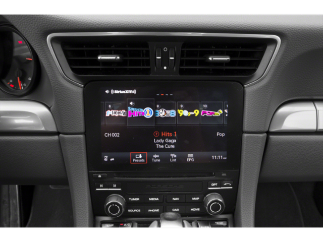 - Radio: Porsche Communication Management (PCM) -inc: CD/DVD drive, 11 GB internal jukebox storage, 2 USB slots, 2 SD card slots, Bluetooth® hands-free mobile phone connection using Hands Free Profile (HFP), Porsche Car Connect (including Carfinder, remote vehicle status, remote services, and Porsche Vehicle Tracking System (PVTS)), Connect Plus module featuring online navigation, mobile phone preparation, audio interface, Apple CarPlay, wireless internet access, SiriusXM satellite radio w/3-month trial, HD Radio receiver, Sound Package Plus sound system featuring 8 Speakers, 150 Watt output and universal audio interface (AUX-IN, USB, iPod)